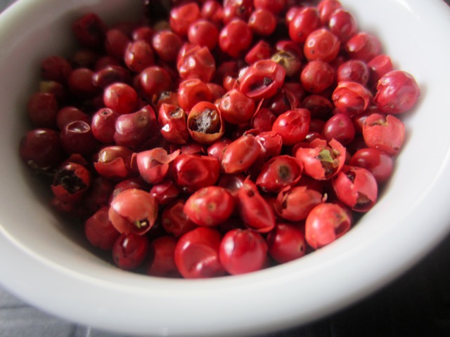 Pink peppercorn is not a true peppercorn. It’s the dried ripened fruit of the Schinus molle tree (Californian Pepper Tree).