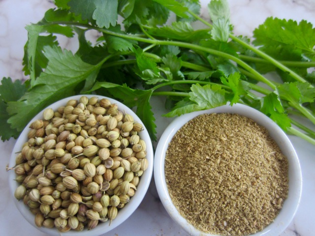 Coriander leaves, whole seeds, ground seeds (Coriandrum sativum) myfavouritepastime.com