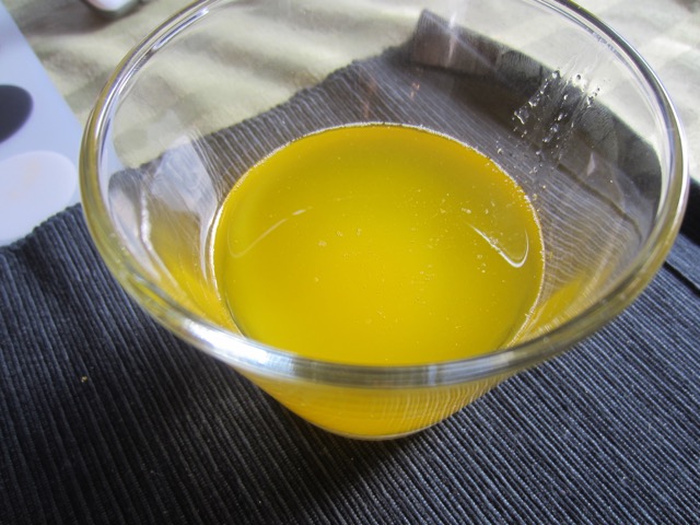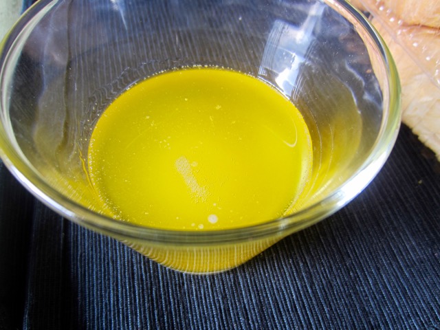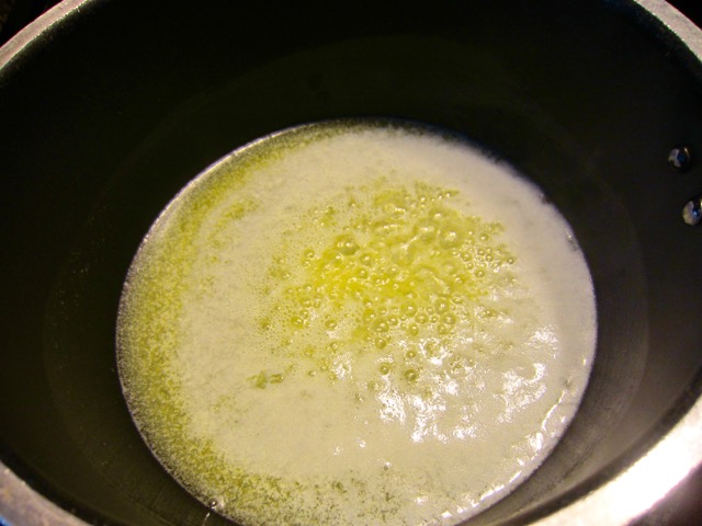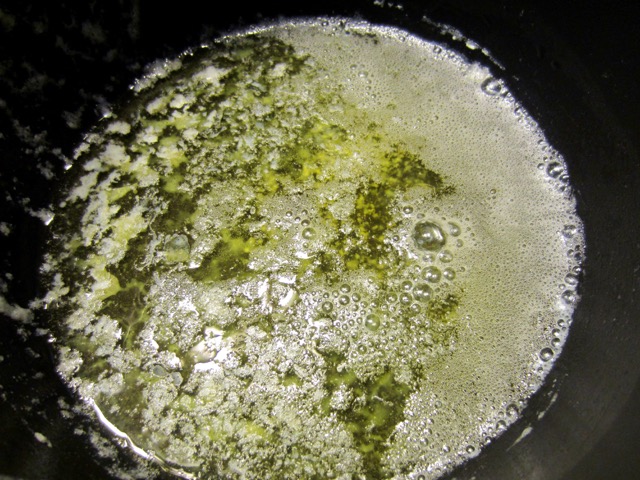 • Let the butter cook for another 3 minutes, also making sure that it does not brown. Turn off the heat. Set aside for 30 minutes, then strain through a fine mesh or cheese cloth. This should clear all the solids