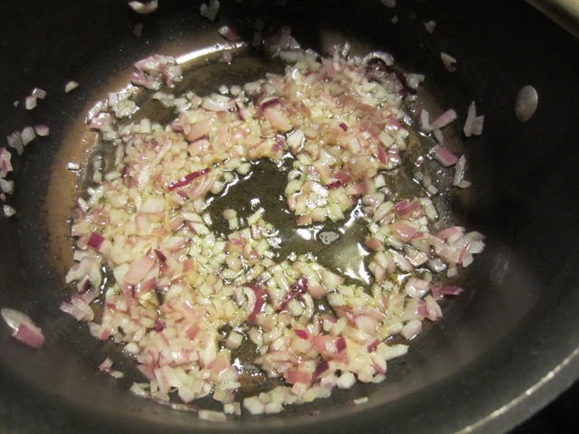 in a large pot, heat the olive oil over medium high heat then sauté onions until light golden.