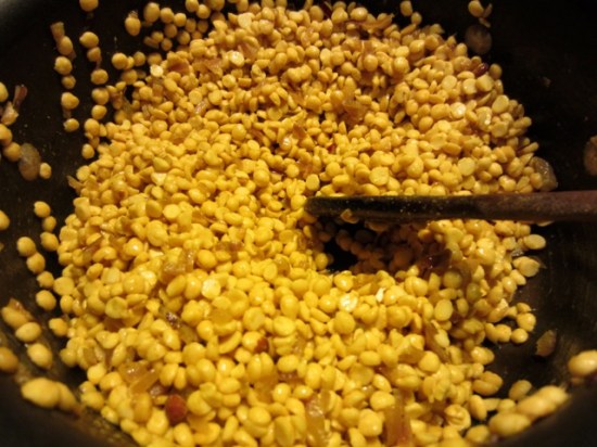Here is what chana dal looks like before it’s soaked. It’s also called Split Desi-Chickpea.