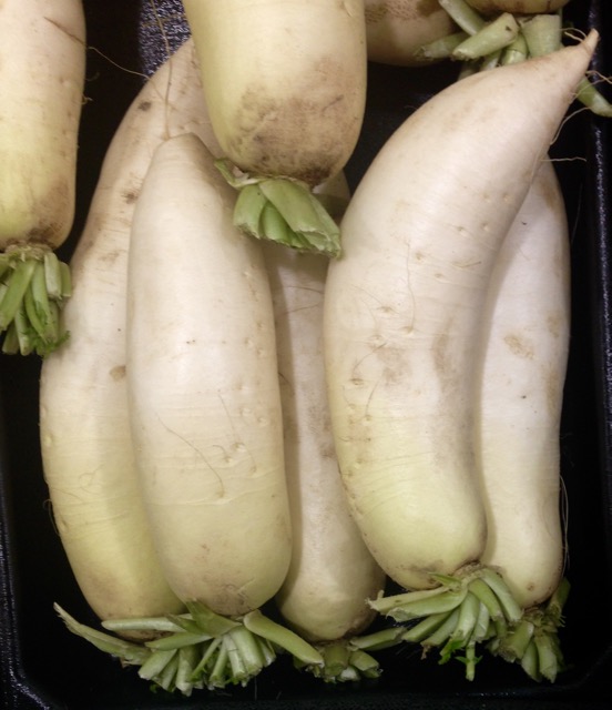 Daikon can be bought in Asian markets or in supermarkets. They should be evenly shaped and firm to the touch. They should have a glossy, almost translucent sheen.