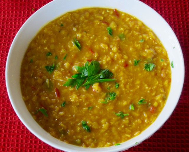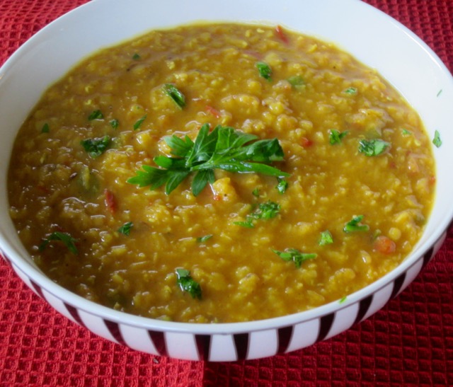 - Taste the soup and adjust seasoning and soup thickness. Just before serving, add the chopped coriander leaves. Serve hot with white rice or chapati.