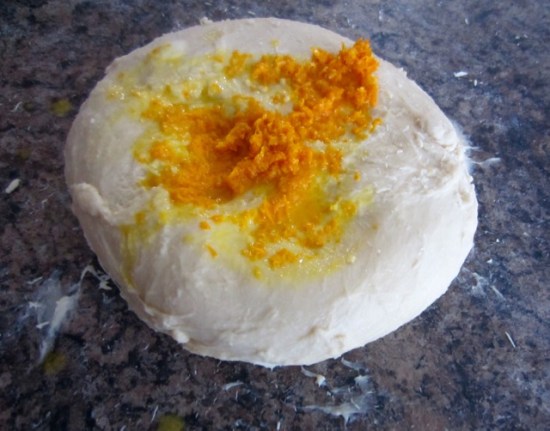 Incorporating the orange zest: once the dough is ready (non-sticky and elastic) incorporate the orange zest-cointreau mixture into the dough, then flour the counter and fold the dough into a ball as shown in the video.