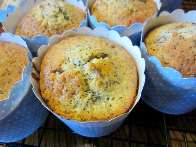- Sift or whisk the flour, baking powder, baking soda, salt and poppy seeds. Line two 12-hole muffin pans with paper cases. Preheat the oven to 360ºF (180ºC) convection; 375ºF (190ºC) regular, ten minutes before using.