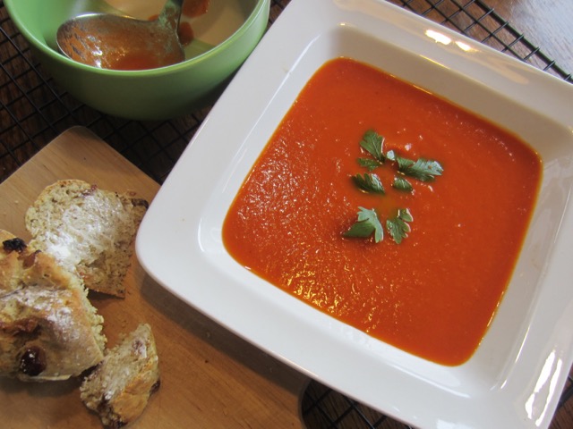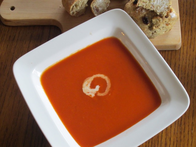 - Blend the soup in two batches, then pass through a sieve to remove the skin and seeds. Stir in the cream. Taste the soup and add the sugar and adjust the seasoning. Serve hot or cold.