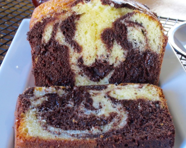 - Alternately spoon the batters into the prepared pan, then swirl with a knife. Bake 50-70 minutes until a skewer inserted comes out clean. Leave in the pan for 15 minutes then transfer to a cooling rack.