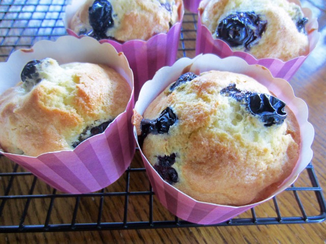 Gently fold in the blueberries.Spoon the batter evenly into the prepared muffin cases. (you will have 9-12 depending on size). Plop the saved blueberries on top of each muffin and bake 25-30 minutes or until golden and a toothpick inserted in the centre comes out clean