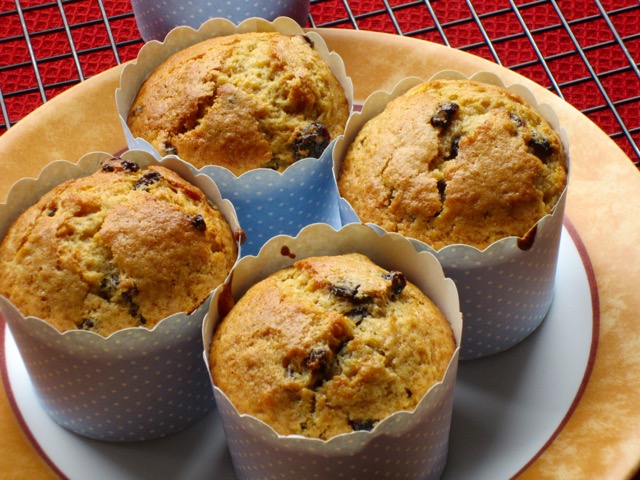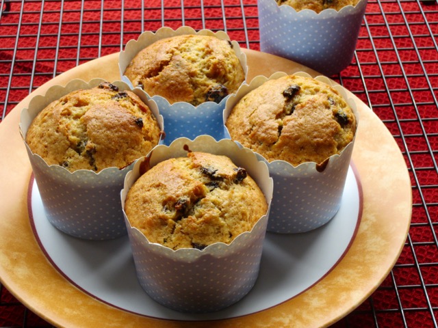 and stir gently until to combine (do not over mix). Gently fold in the raisins. Spoon the mixture evenly into the muffin cases and bake in the oven for 25-30 minutes or until golden and a toothpick inserted in the centre comes out clean. Set aside 5 minutes then transfer on to the cooling rack