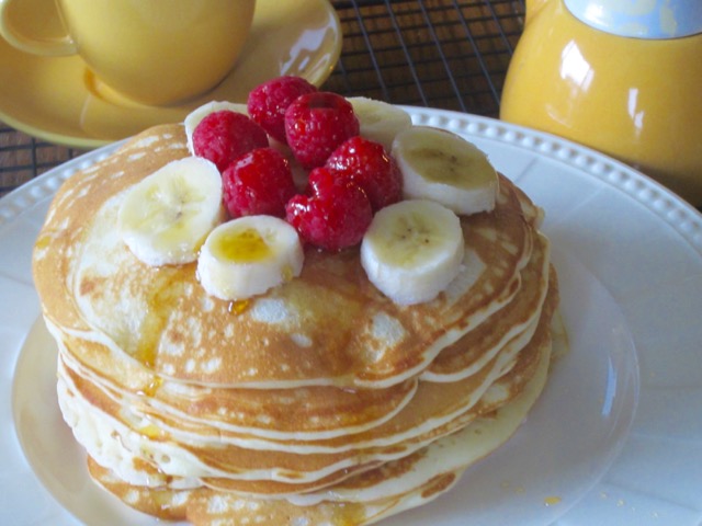 This is the basic recipe I use for most of my pancakes. One batch will make eight 6-inch pancakes. If you want them larger you’ll get six 7-inch (18cm) pancakes. You can adjust the amount of sugar to fit your palate. ENJOY!