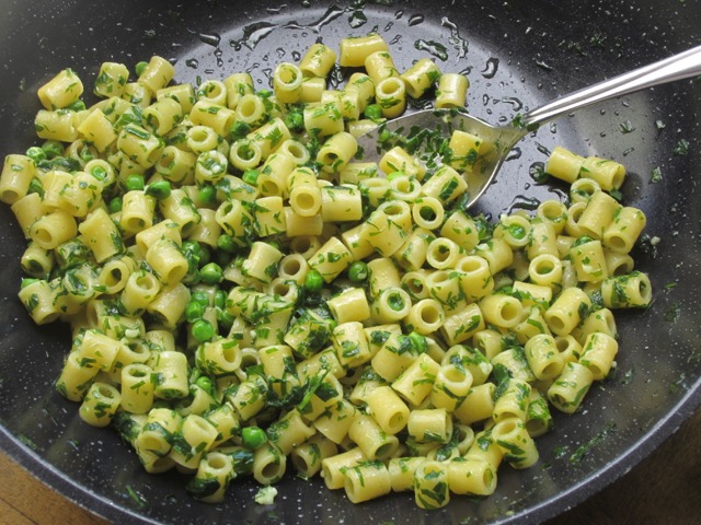 - Heat the olive oil and butter in a large saucepan over medium-low heat. Add the garlic, chilli flakes and a little salt and cook, 1 minute. Do not brown the garlic. Add the parsley and stir for another minute until you have a velvety smooth paste. Add the sweet baby peas, and stir, then add the drained pasta. Stir in 2-4 tablespoons pasta water and stir to combine until pasta is coated with sauce. Check seasoning and serve pasta immediately.