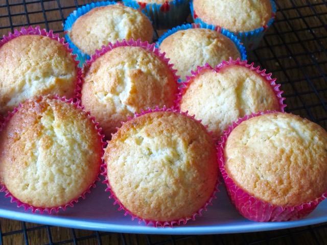 - Spoon the batter evenly into the prepared muffin cases. Bake on the top rack for 25-30 minutes or until golden and a toothpick inserted in the middle comes out clean. Set aside for 5 minutes then transfer to a cooling rack.