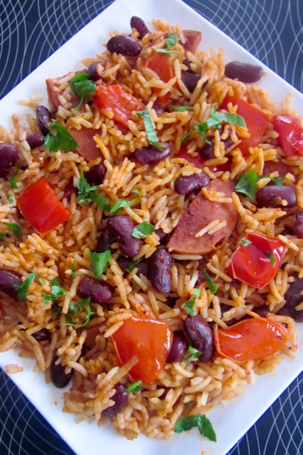 Golden Sella Basmati Rice with Beans and Smoked Sausage