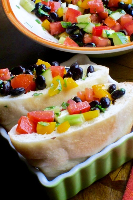 This black bean salad was awesome. I made it sometime last year but haven’t gotten round to posting it. On that same day I made some dainty pita pockets and that is how I served the salad. Everything was nestled inside my little pita pockets and that was lunch that day.