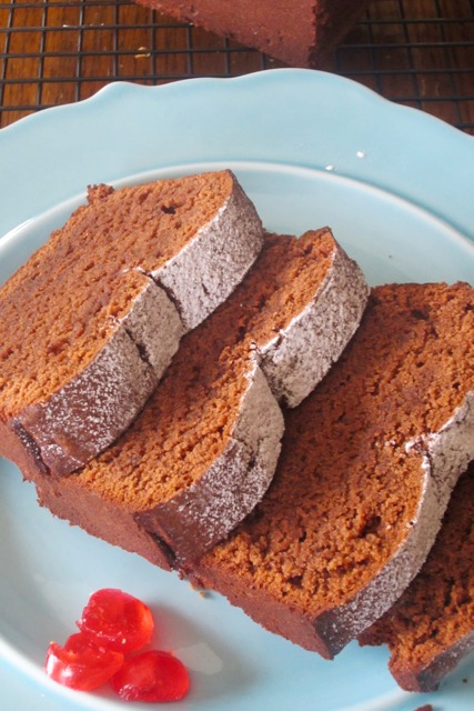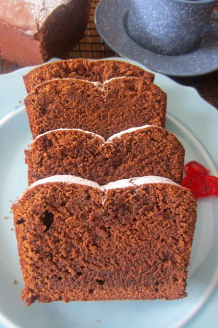 - For a 9x 5 inch loaf pan. 280g (2¼ cups flour); 2¼ tsp baking; 150g (6oz) chocolate; 185g (¾ cup) butter; 250g (2¼ cups) sugar; 3 eggs; 3 tbsp coffee granules; ¾ cup sour cream.