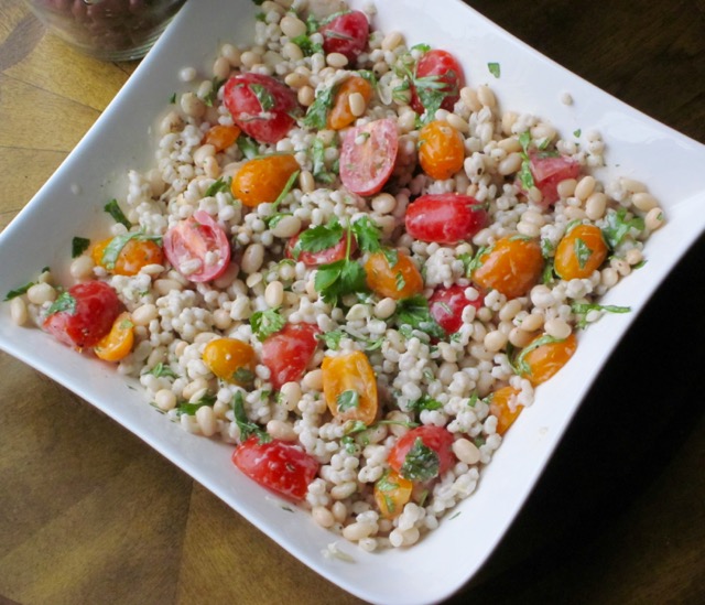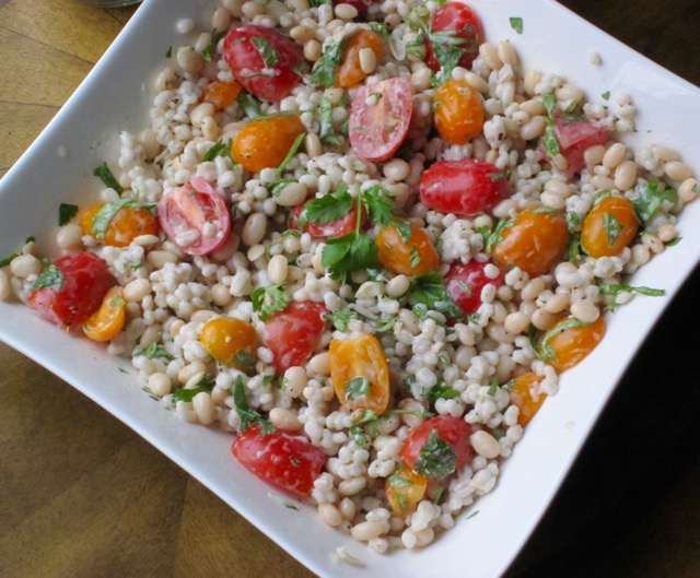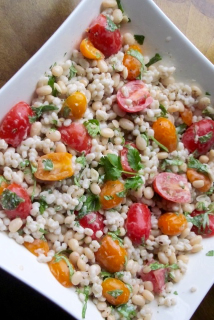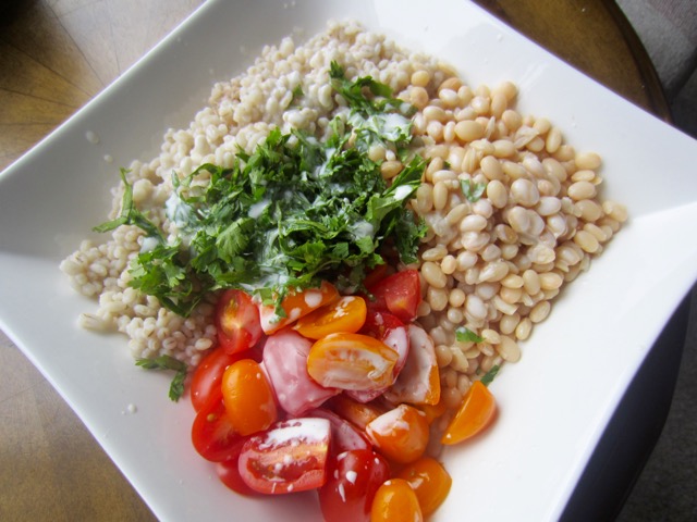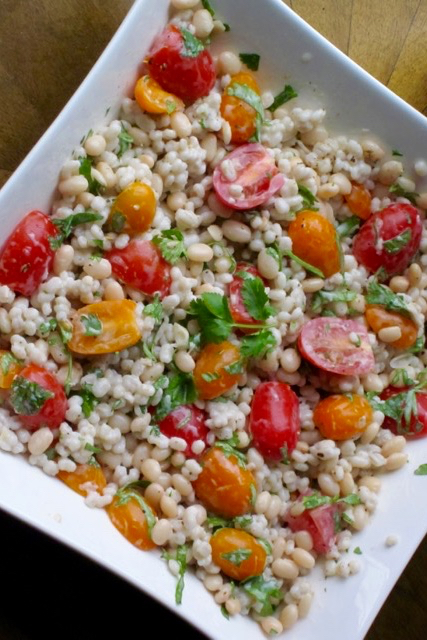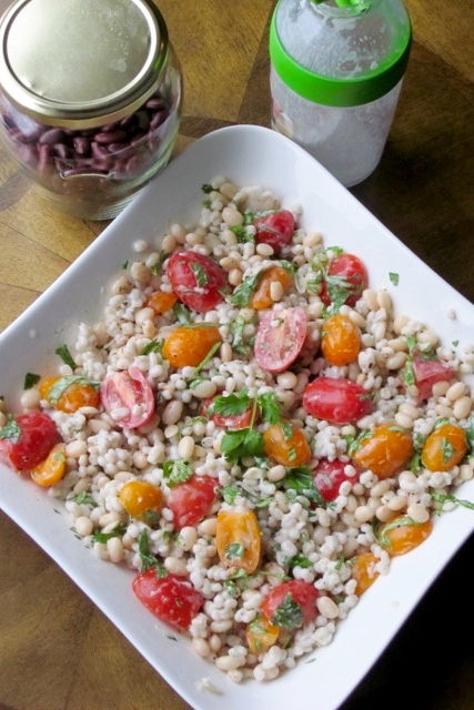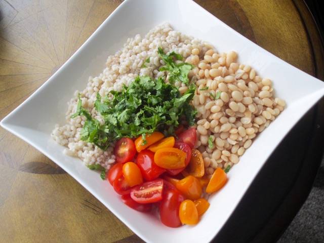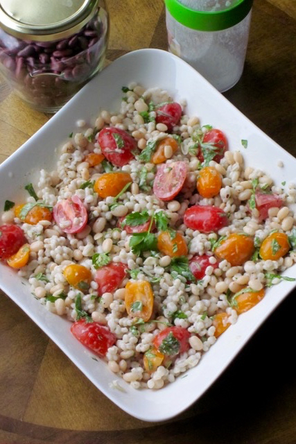 I usually cook a lot of barley and navy beans in advance and keep it in the fridge. I love using both for making salads. The beans provide the protein base and the barley, the carbohydrate base. You can add whatever veggies pleases you. I wish you a pleasant week!
