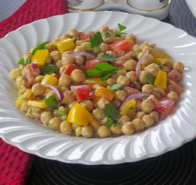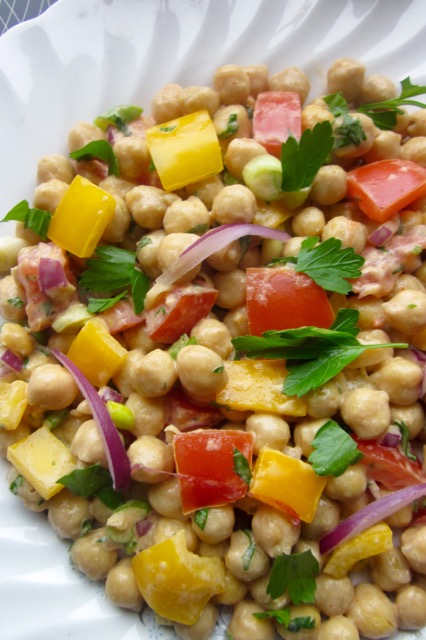 1. My wife makes a variation of this salad … LOVE it !! We like to substitute Quinoa for the chick peas sometimes, as well … yum.