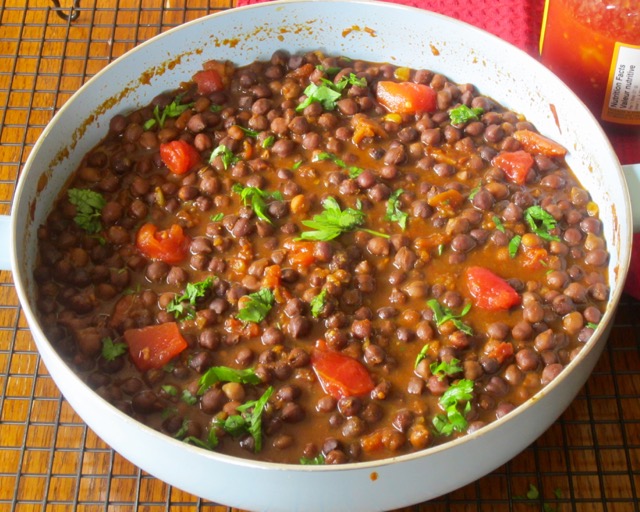 - Add water and stir, then add the chickpeas and simmer, covered 20 minutes, stirring from time to time.