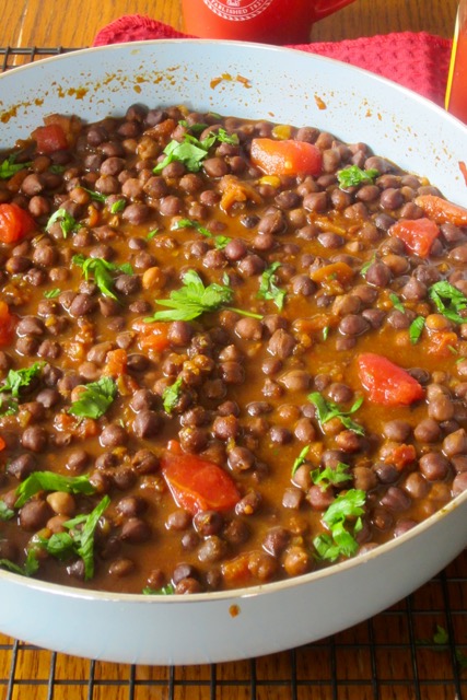 Please note that I used Desi Chickpeas for this recipe but you can also used the normal canned Kabuli chickpeas. Desi chickpeas are smaller and darker and have a tougher seed coat (testa). They are used to produce Chana Dal (split yellow chickpeas). This curry is so delicious I am actually cooking it again for dinner, tonight. Have a good evening!