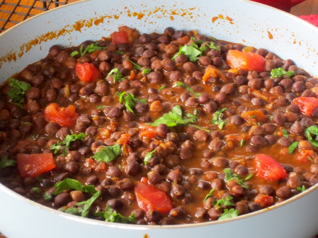Just before serving stir in 1 teaspoon sugar and sprinkle with kasuri methi and chopped coriander leaves. Serve with naan or rice.