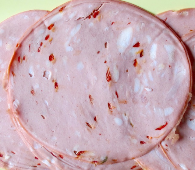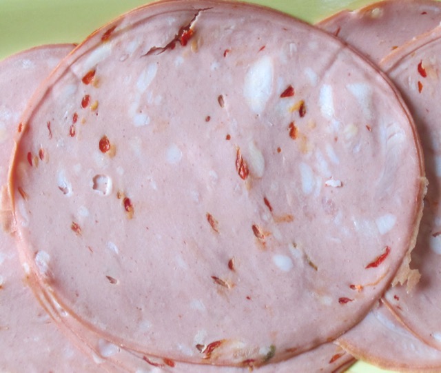 Authentic mortadella is originally from Bologna, Italy and is made from pure pork. Cheaper varieties may contain beef, pig’s head, soya flour, tripe and artificial food colouring. Please check the ingredients list of the product you buy.
