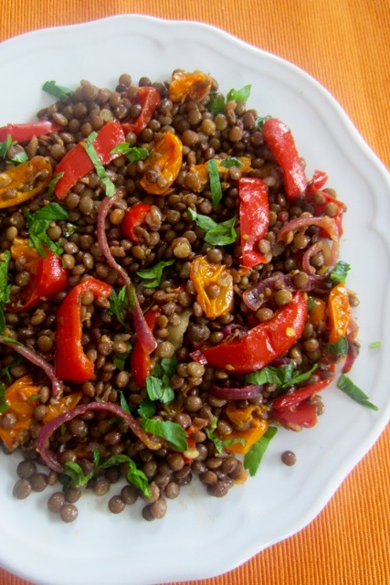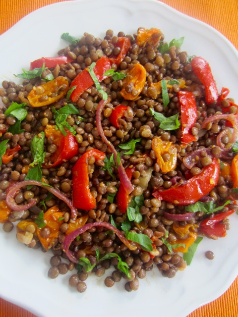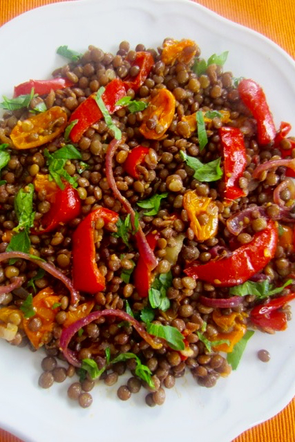 Lentil Salad with Roasted Garlic Tomato and Bell Pepper