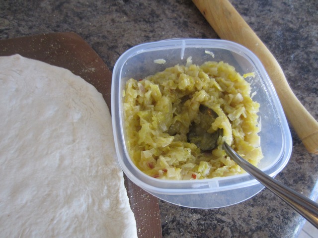 Spread the leek evenly on the pizza crust using the back of a spoon. Leave about 1/2-inch border.