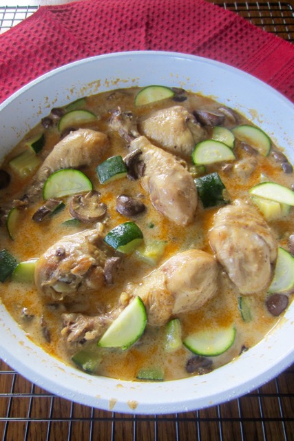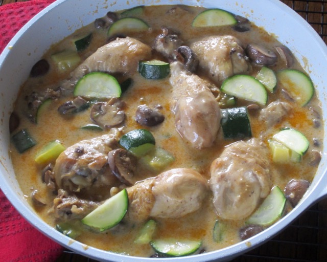 - Add the chicken and bring to the boil. Reduce the heat and simmer covered, 25-30 minutes or until chicken is fully cooked. Add the zucchini in the last 5 minutes of cooking.