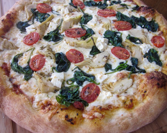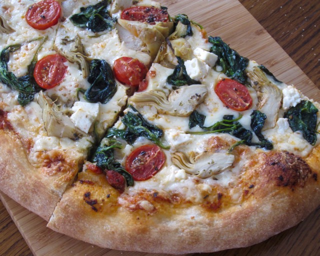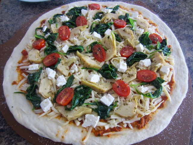 I am always trying out pizza combinations. Garlic flavoured spinach is one of my favourite toppings. Happy baking.