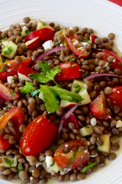 Please remember to set the salad aside for at least 30 minutes for flavours to meld. The longer you leave it the better it will taste because the lentils will soak up the dressing.