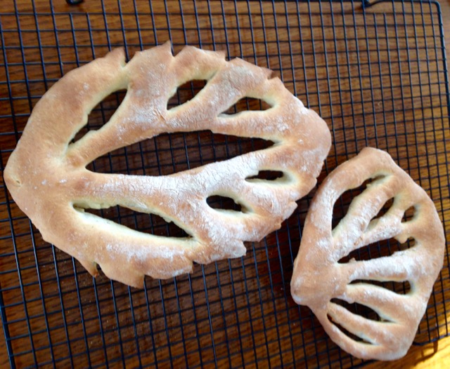 Fougasse is a type of simple flat bread that belongs to the same family as focaccia and originates from the region of Provence in France. It can be shaped like a leaf, tree or wheat stalk. Nowadays people make other fancy shapes.