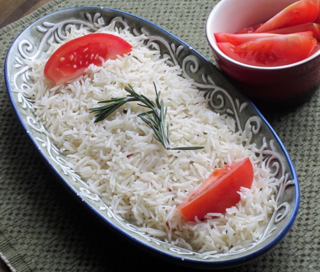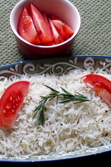 5. Lift the lid, add the remaining 1 tablespoon rosemary and fluff the rice. Serve immediately.