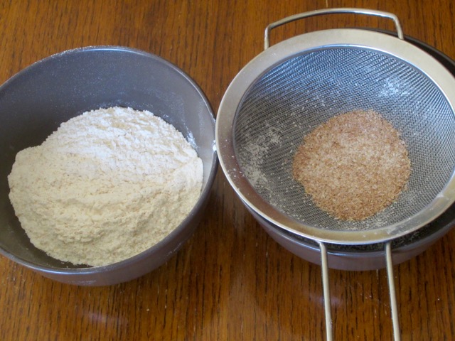 To produce whole wheat flour, the separated bran is added back to the flour after milling. If you sift whole wheat flour produced in Canada or USA, it will normally separate into flour and bran as shown in the picture below.