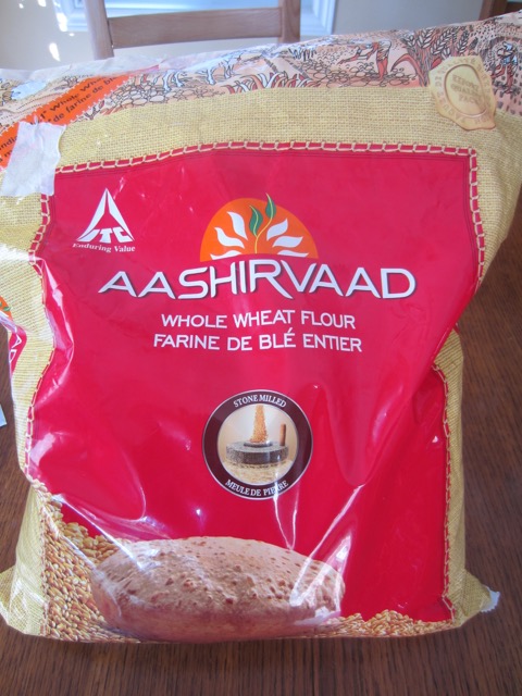 Below is my bag of whole wheat flour, exported from India. I use it to make chapati.
