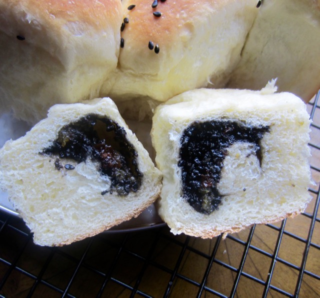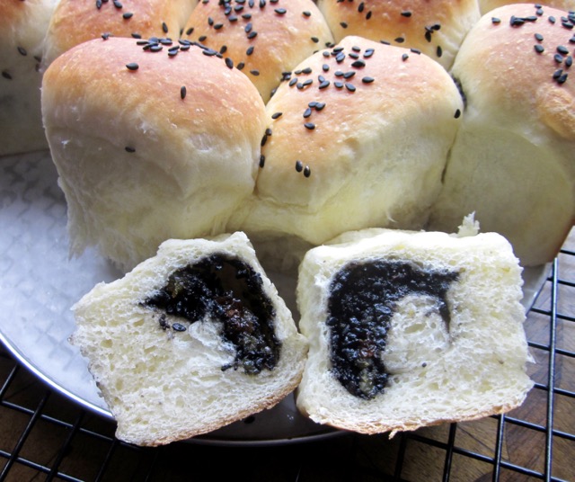 The best part of these buns is the sesame filling. I had planned to fill them with poppy seeds but I was multitasking that morning, so I grabbed the wrong jar and didn’t notice until I sat down to taste them. The black sesame seeds tasted great so I would make this again and again. Have a pleasant week!