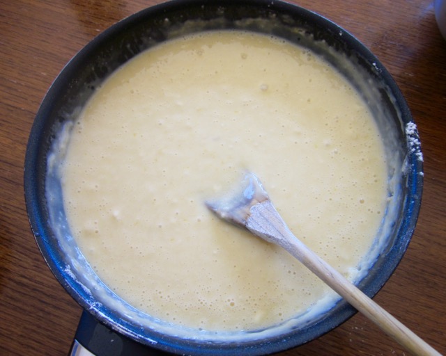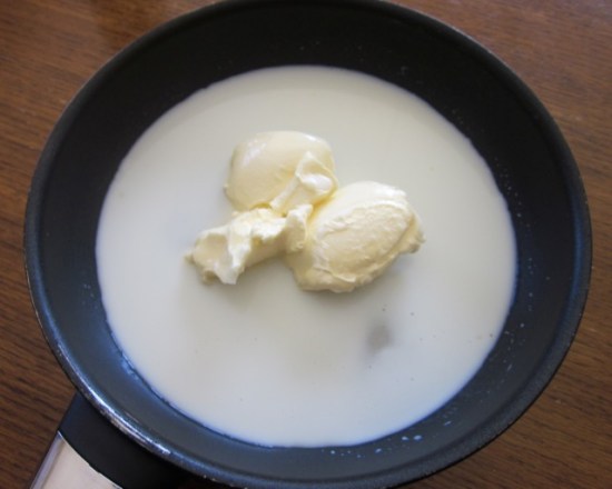 - Place the butter, sugar and milk in a medium saucepan and stir over medium heat without boiling until the sugar is dissolved and the butter is melted. Cool for 10 minutes.