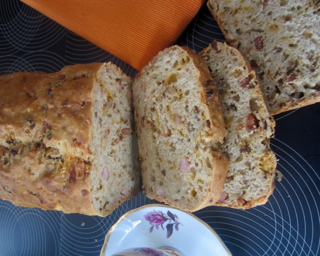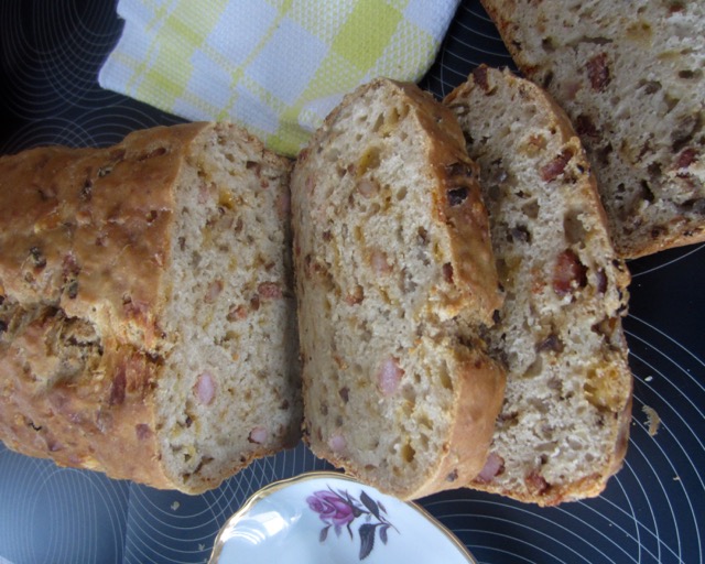 - Preheat the oven to 425ºF (220ºC) ten minutes before using. Grease and line the base of a 9 x 5-inch (23 x 13cm) loaf pan with parchment. Sift the flour and baking powder. Stir in the cooled onion and bacon, and the cheese. Make a well in the centre.