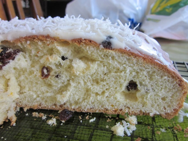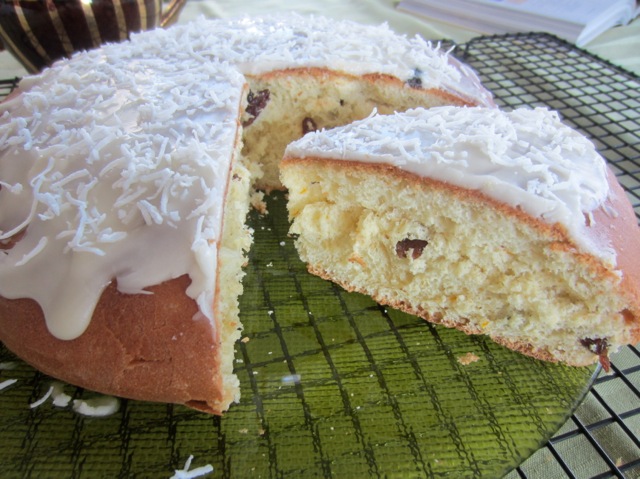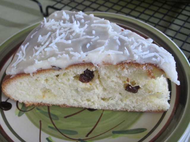 8. Looks like a treat with tea or coffee! I love the use of golden raisins, I find them much nicer in baking. The coconut icing makes it look delicious 🙂