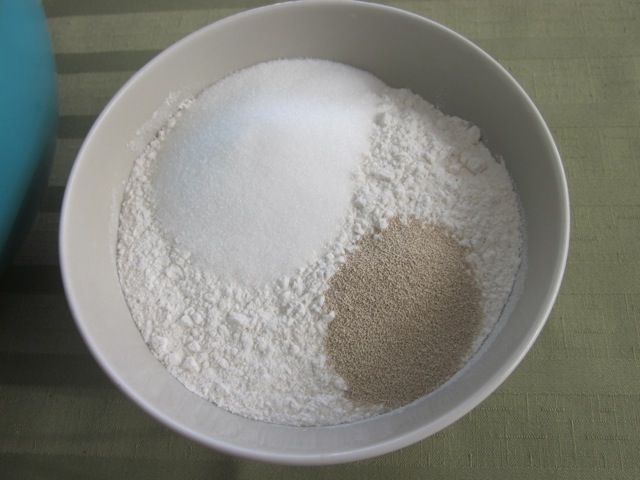 Preheat the oven to 375°F (190°C). Line a baking sheet with parchment (greaseproof) paper. Sift the flour, instant yeast, and castor sugar.