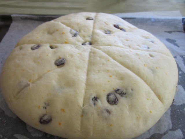 More or less the same procedure, then make them into little buns with a cross on top. Easter is soon here…thank God. The weather is awful right now!