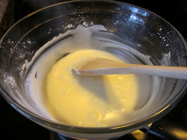 Add the butter mixture to the icing sugar and mix to a smooth paste. Stand bowl over a pan of simmering water and stir until icing is glossy.