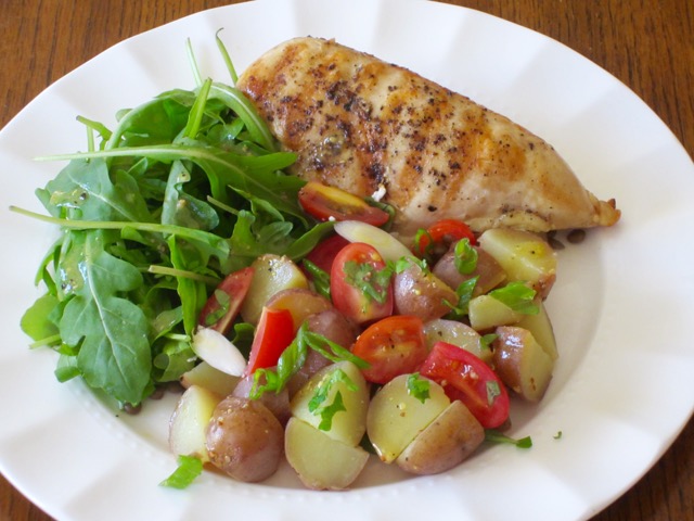 Warm potato salad goes well with grilled chicken. You can also use rotisserie or roast…