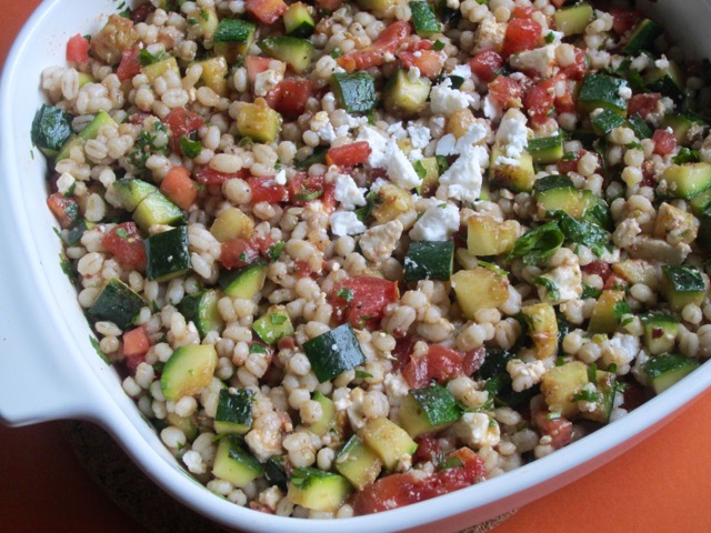 Cook the pearl barley and let it cook completely. Marinate the zucchini and then grill…